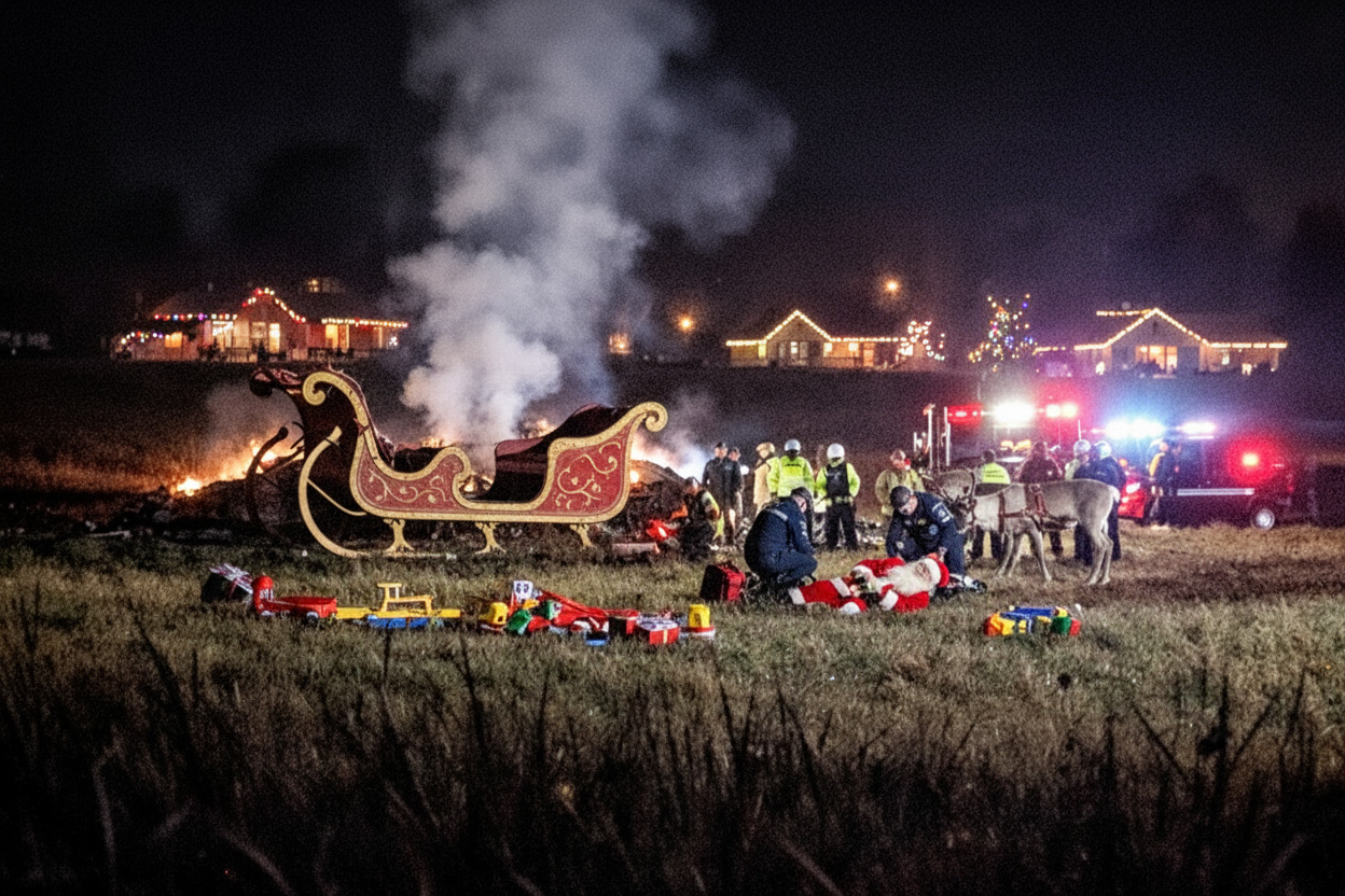 “At first, we treated it like a downed aircraft,” a fire department official said. “Then we started seeing the red suit, the sack, and the reindeer harnesses. That’s when it became clear this wasn’t anything we’d trained for.”